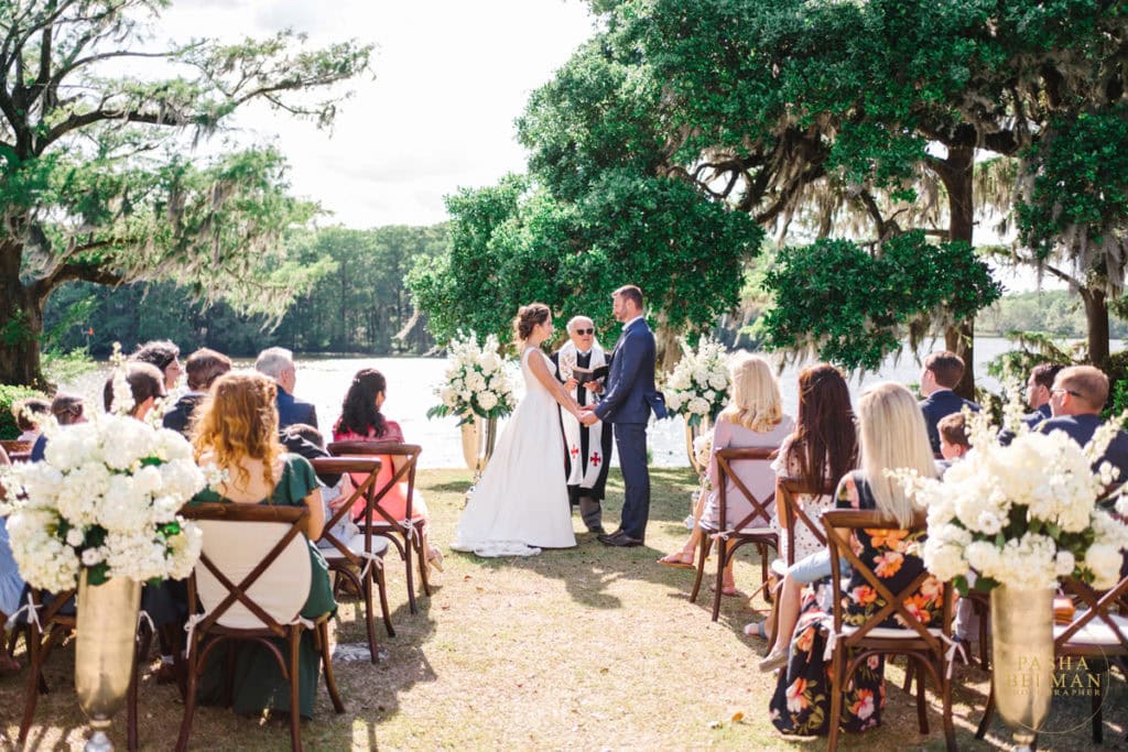 Spring and fall are the most popular seasons for weddings at Wachesaw Plantation due to the mild temperatures, golden light, and lush greenery. However, summer weddings can be equally beautiful with sunsets over the Waccamaw River.