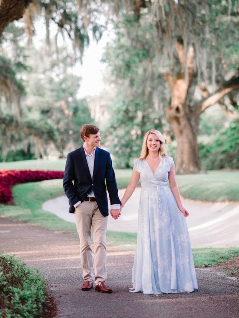 As a Pawleys Island engagement photographer, I love photographing couples at Caledonia because it offers a refined, elegant setting that pairs beautifully with natural, candid moments. The soft light filtering through the live oaks creates a dreamy environment that highlights genuine emotion and connection.